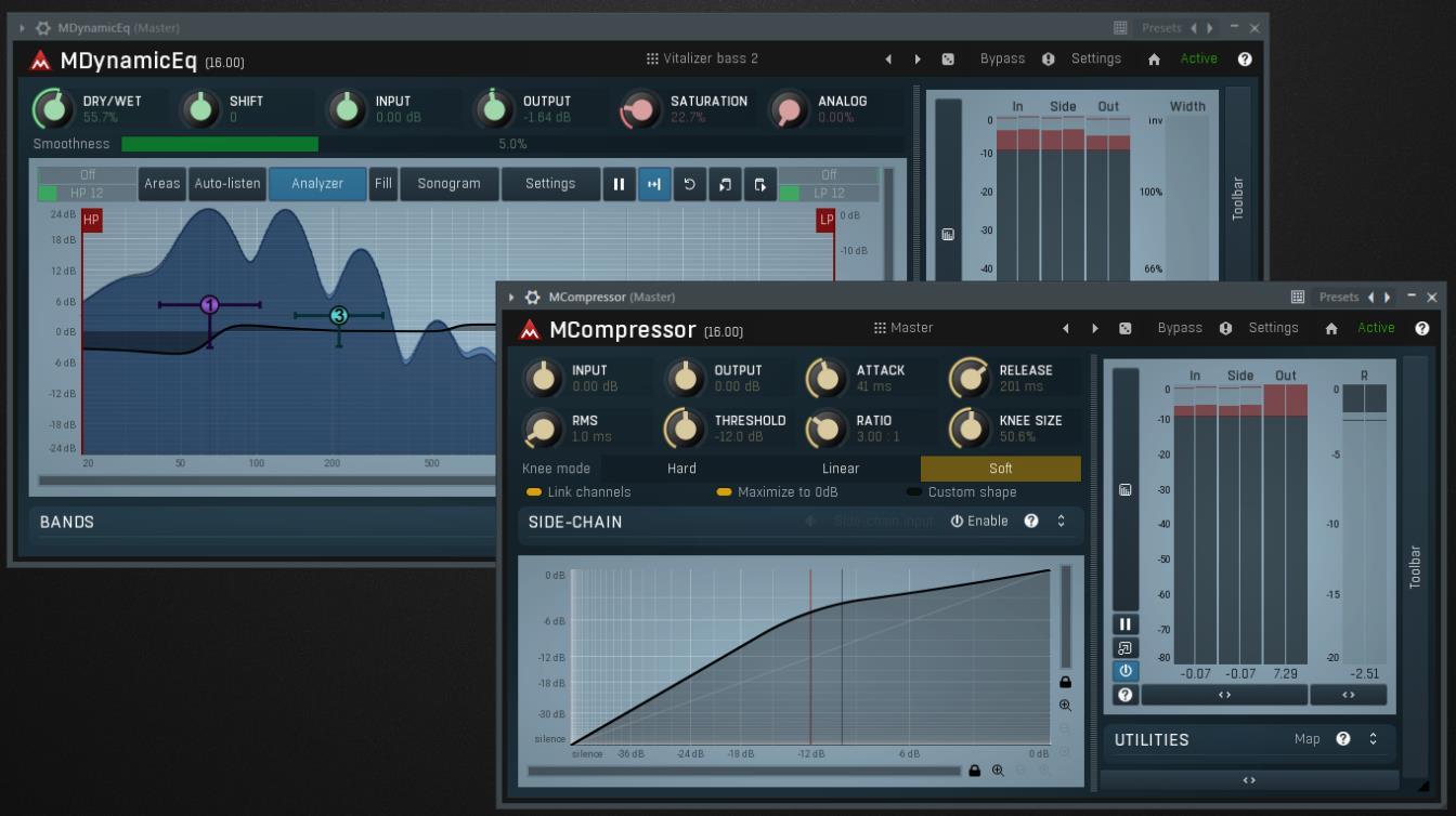 A powerful package with a rather unusual interface. In addition to a set of standard technical solutions (compressor, limiter, reverb, etc.), it contains a number of rather interesting tools. For example, MBassador is an effect that allows you to saturate the sound with high-quality bass harmonics. Or MFreeformPhase is an effect that allows you to finely control the phase of the sound at the desired frequency. A pleasant bonus is that you can get a significant part of the package for free.