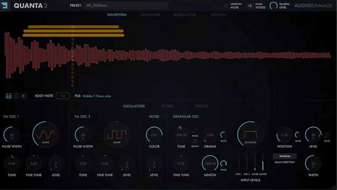 You now get an additional VA oscillator, allowing you to use a single sample in a variety of ways to create surround sounds. For example, you can route one oscillator to the sub-bass channel or run it through a glitchy granular engine while leaving the other oscillator clean.